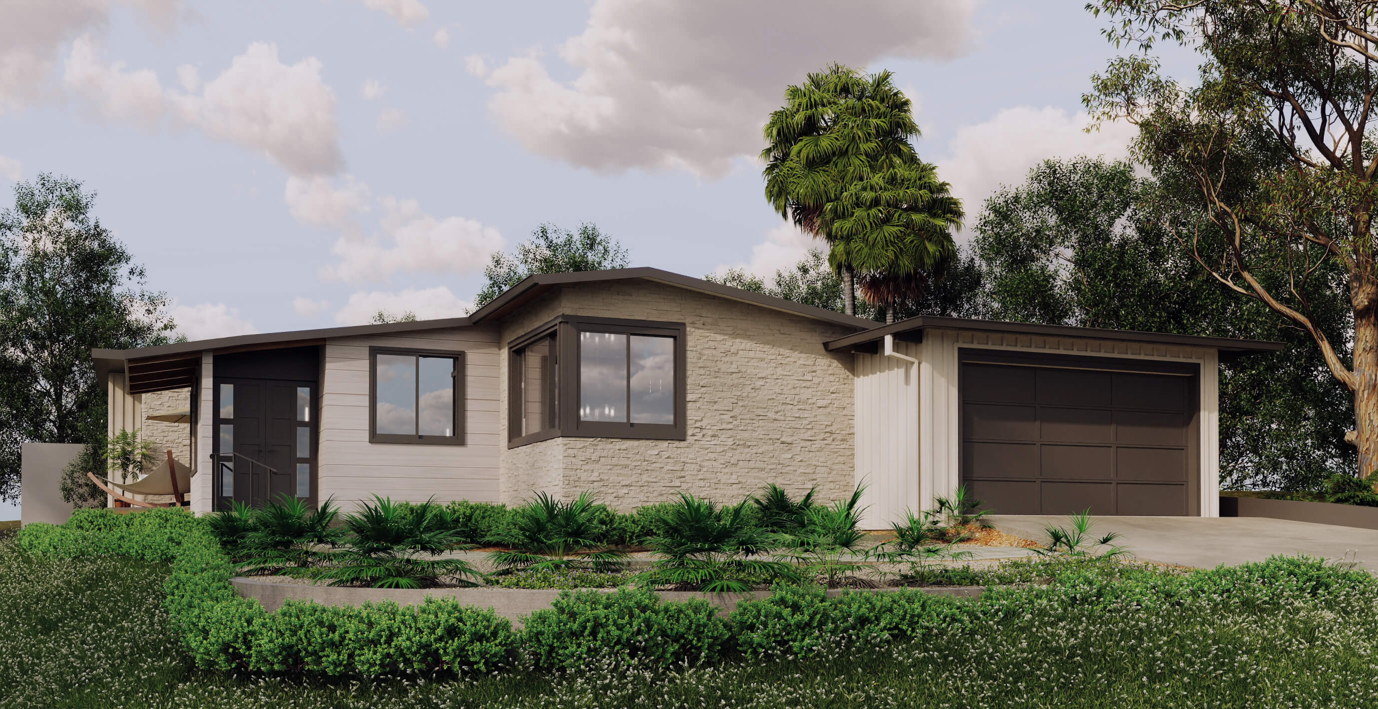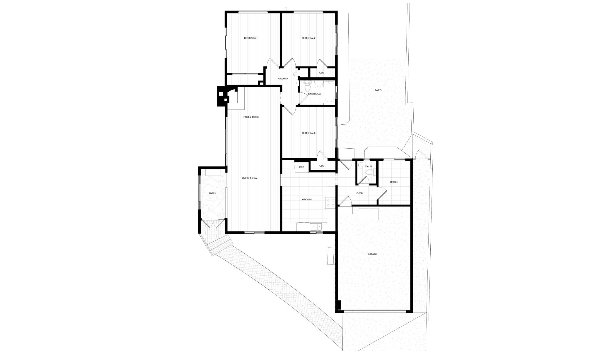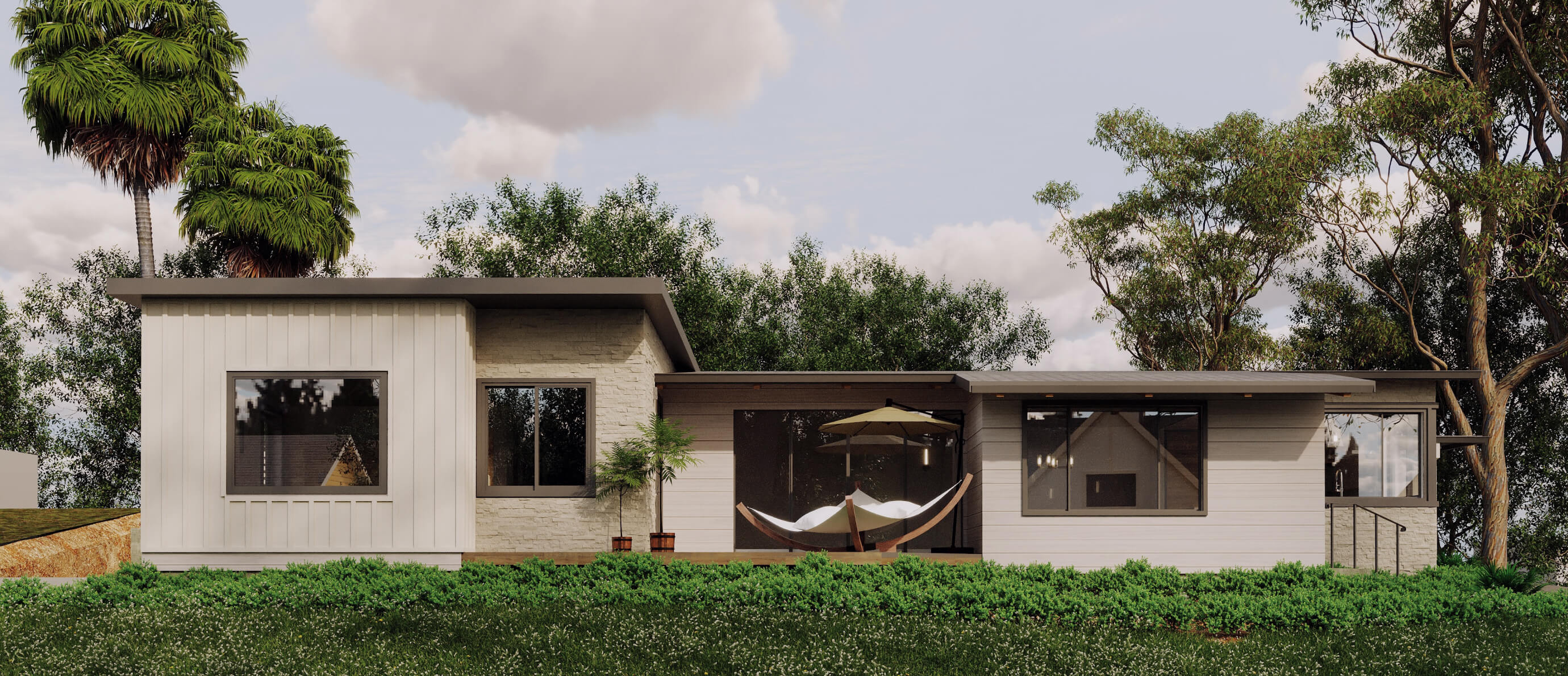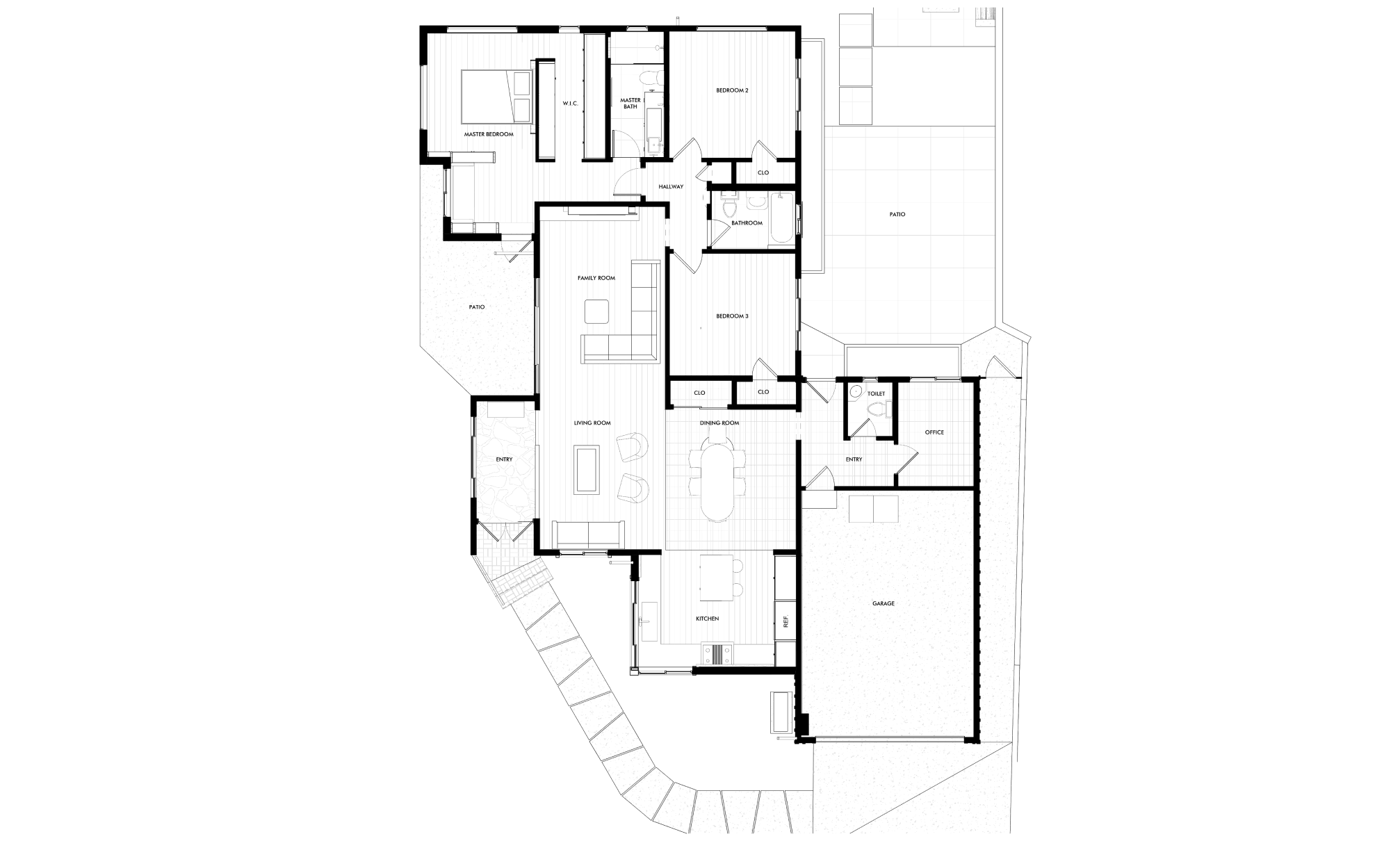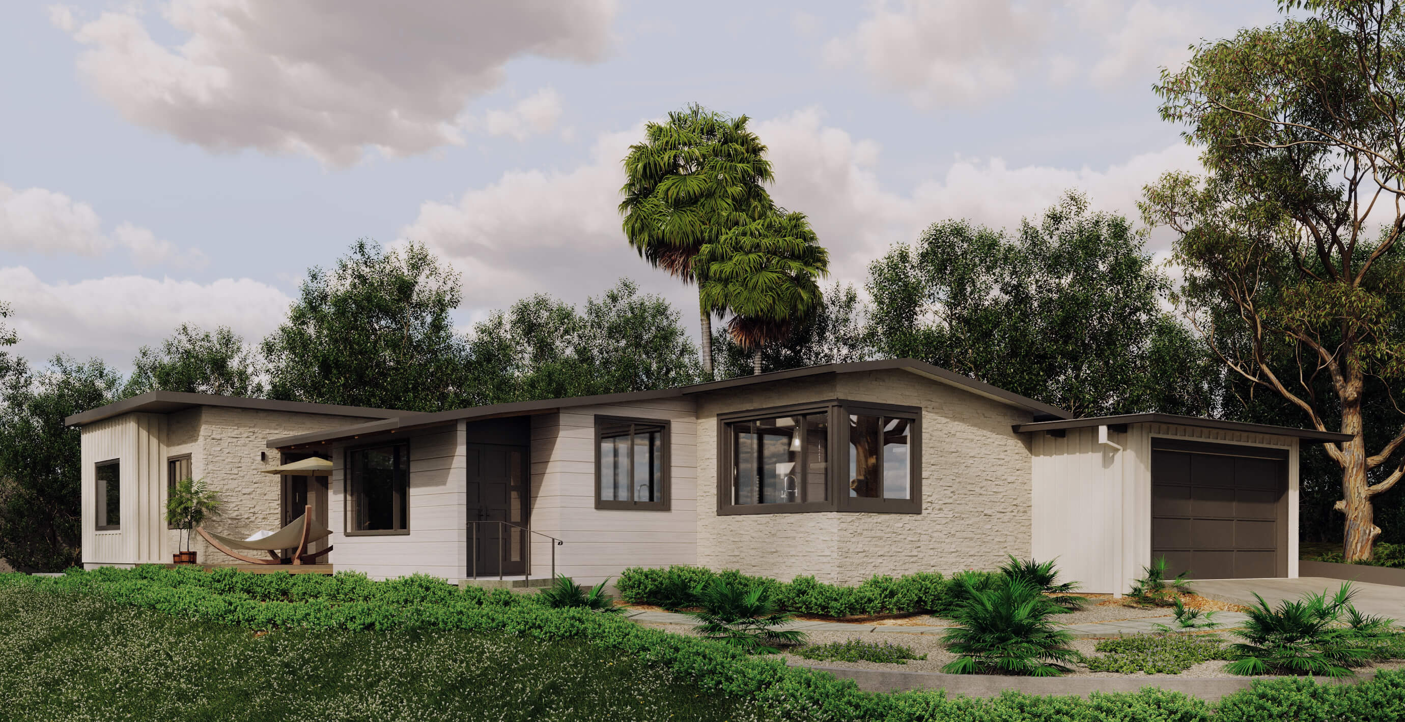 Perched on a slightly raised corner lot, this home’s transformation introduces additions on both ends of the residence, expanding the interior while redefining the L-shaped yard. New retaining walls create structure, carving the outdoor space into distinct zones - a spacious patio for lively gatherings and a cozy firepit seating area for more intimate moments.